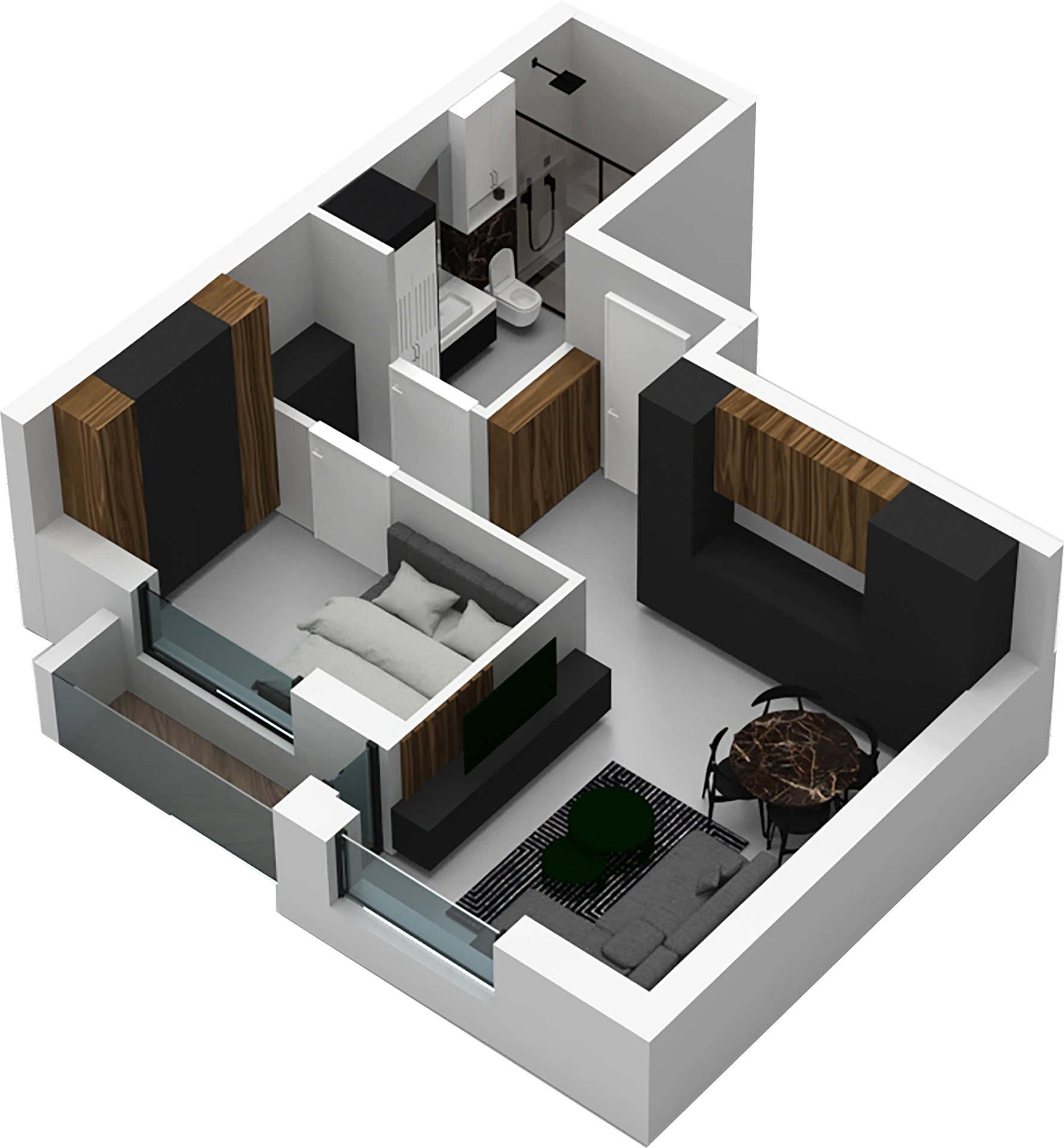 Thanks to the thoughtful layout, the apartment feels more spacious than its size suggests, making it an excellent option for couples, rental, or investment.